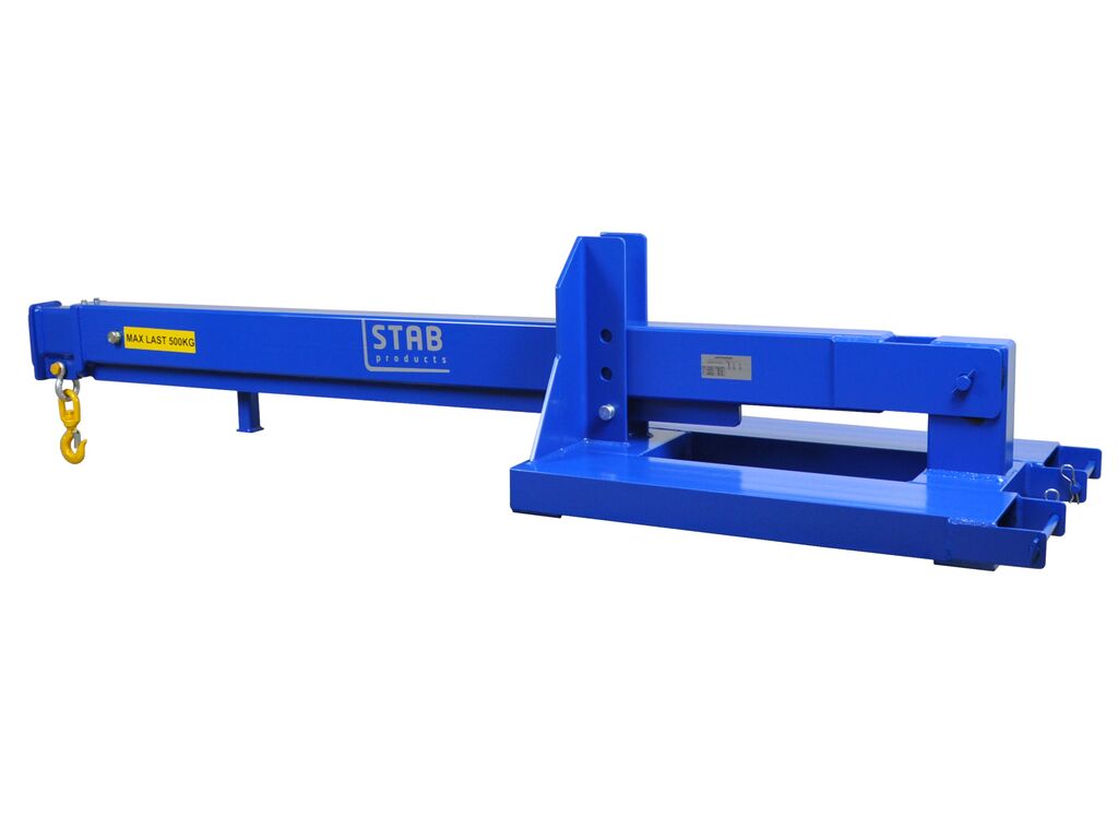 Kranarm med gaffelunderrede för montering på gaffelarmar. Kranarmen låses på gafflarna med hjälp av sprint bakom häl. Finnas i två olika utförande. KTS där utskjut samt lyftvinkel är ställbar i tre olika lägen. och KS där enbart utskjut är ställbart.