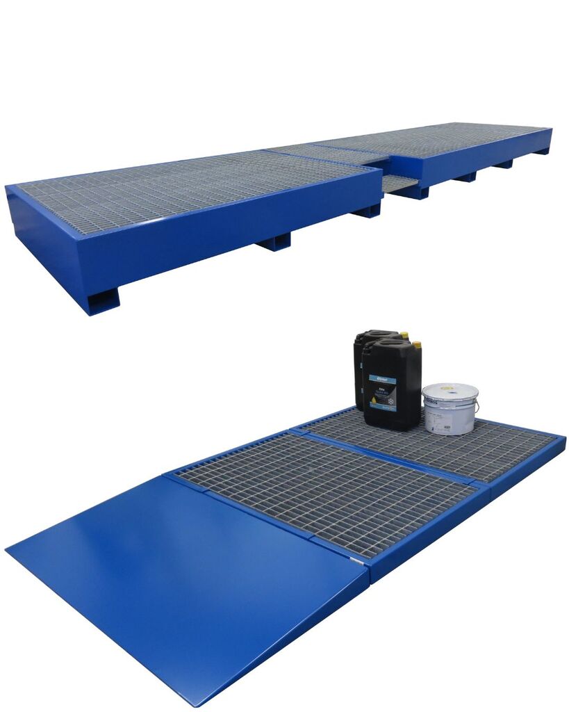 samlar upp spill från fat och dunkar och förhindrartt föroreningar sprids. Perfekt vid av och omtappningsarbeten. Enheterna kan sammanfogas till önskad storlek/form